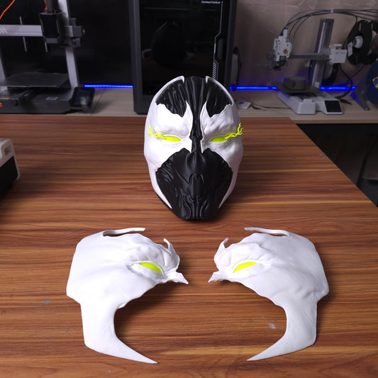 Mascara magnética del personaje Spawn con ojos que brillan en la oscuridad